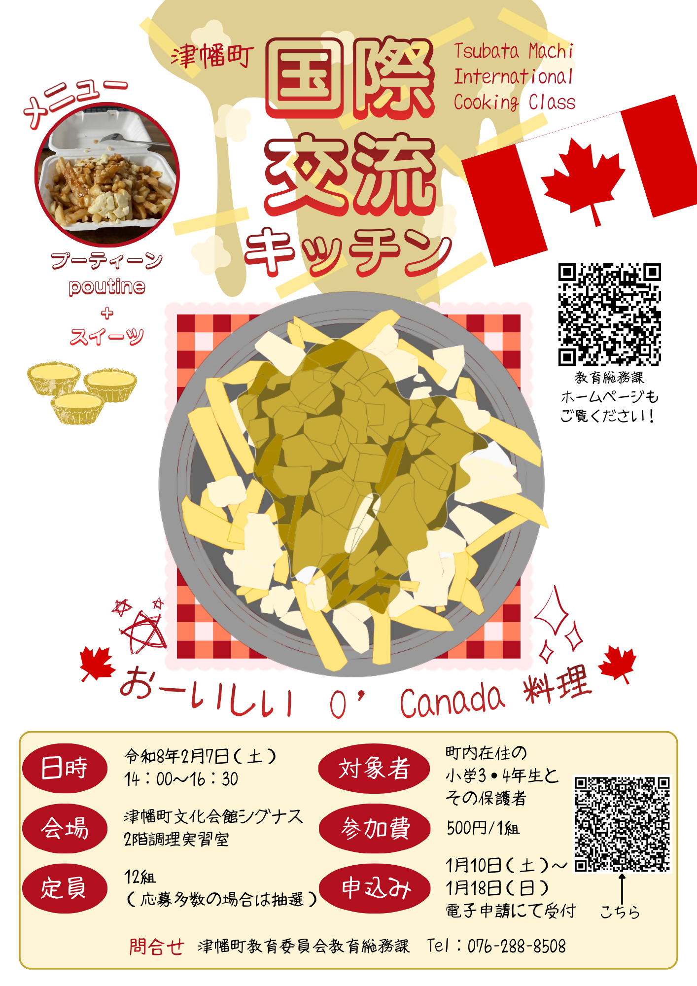 津幡町国際交流員アリシャの出身地であるカナダの代表的な料理プーティーンとスイーツを作ります。